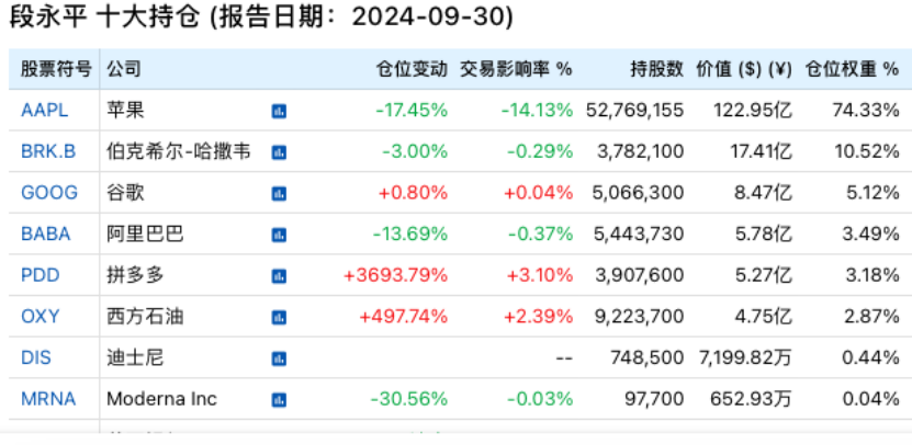 段永平加仓拼多多、西方石油,减持苹果