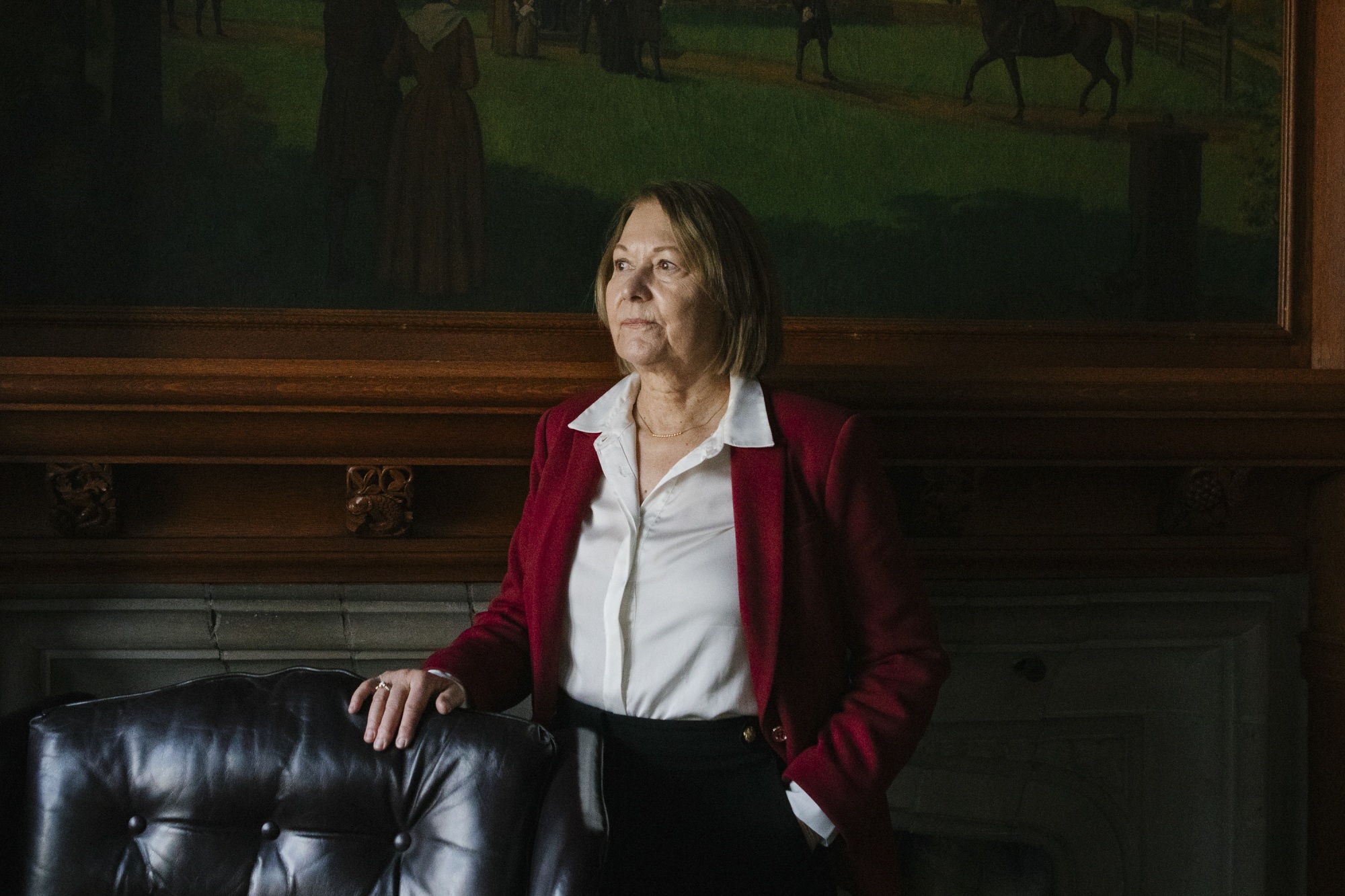 左图:穆伦伯格学院院长凯瑟琳·哈林。右图:位于宾夕法尼亚州阿伦敦的穆伦伯格学院校园。摄影:米歇尔·古斯塔夫森/彭博社